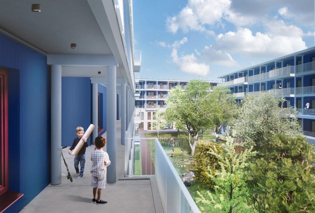ausgeführt werden, kommen in den Obergeschossen Holzmodule in
