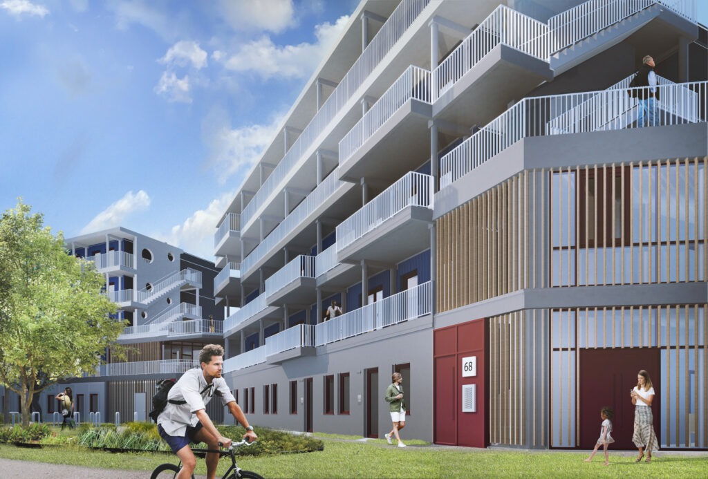 Treppenhäuser und Laubengänge aus Stahlbetonfertigteilen erschlos—