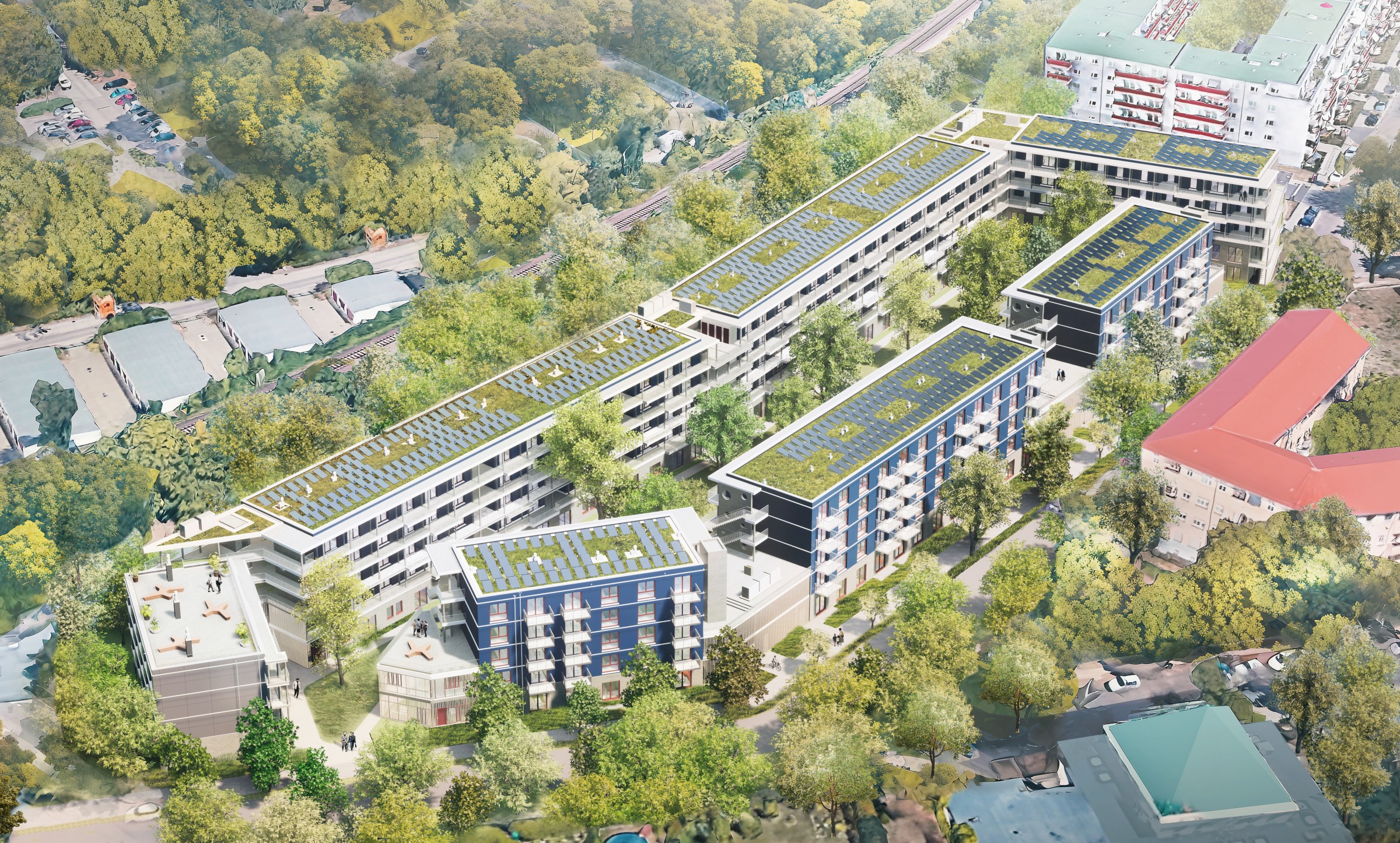 dächer und teilweise als Dachterrassen ausgebildet, um eine optimale